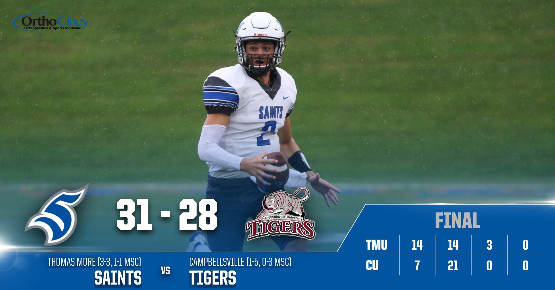 Thomas More Saints On Twitter Tmu Football Defeats Campbellsville 31 28 On The Road Letsgosaints